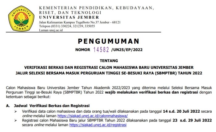 Call Centre Akademik : 082180888055 (WA) | SSC : 085377337773 (WA) | akademik@unej.ac.id