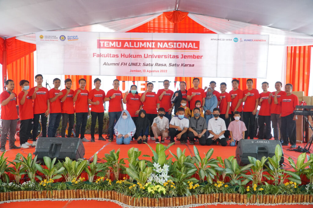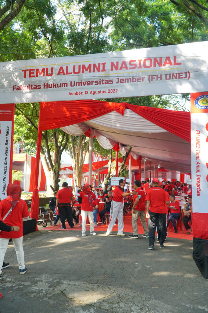 Ratusan alumni FH berkumpul kembali, bernostalgia bersilaturahmi dan mengenang memori di kampus yang kini mengusung motto Ilmu, Amal, Integritas. Mereka berkumpul dalam acara Temu Alumni Nasional 2022 dengan semangat “Satu Rasa, Satu Karsa”. Acara Temu Alumni Nasional diisi dengan beberapa kegiatan seperti senam bersama, jalan santai, peresmian Pusat Layanan Terpadu Alumni dan Mahasiswa FH Universitas Jember, Alumni FH Universitas Jember Berbagi, serta Musyawarah Nasional Alumni FH Universitas Jember.