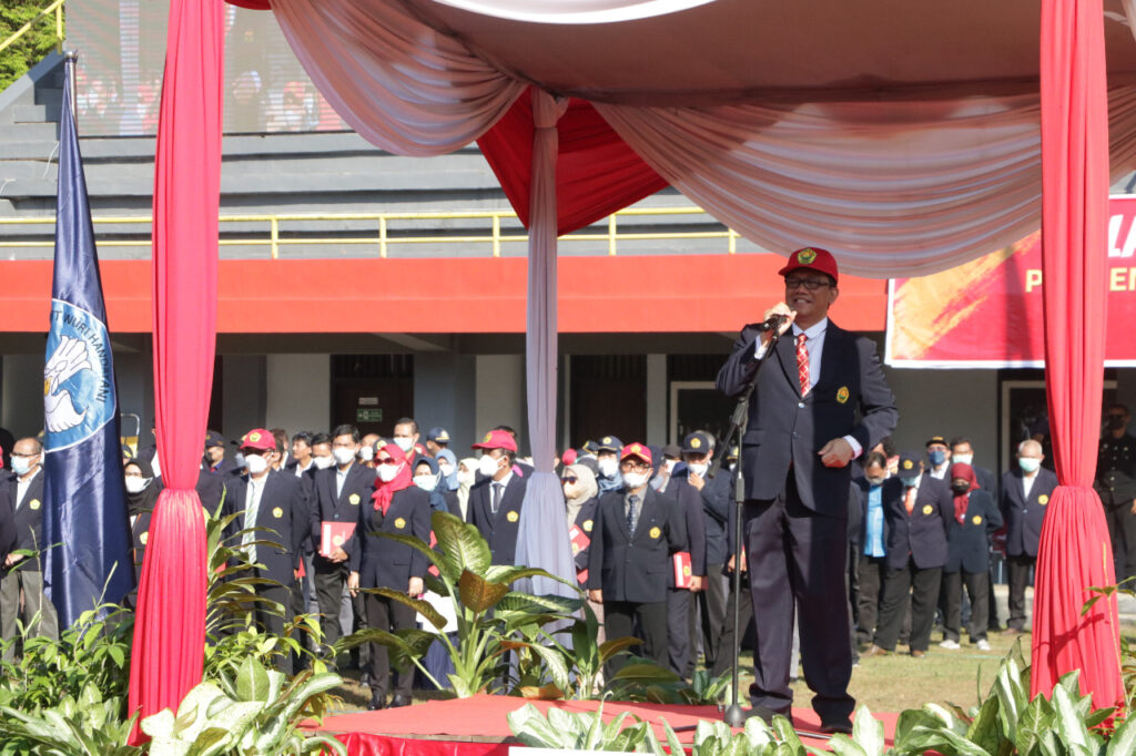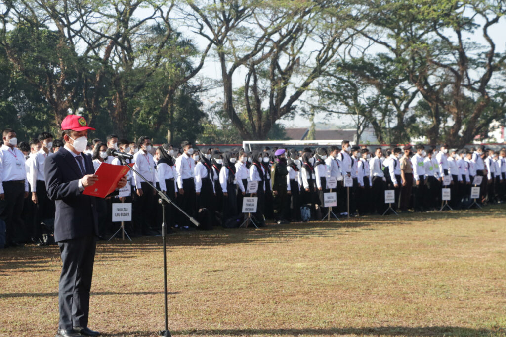 Rektor Universitas Jember, Iwan Taruna melantik 8.450 mahasiswa baru angkatan 2022 dalam sebuah upacara di stadion Universitas Jember (15/8).