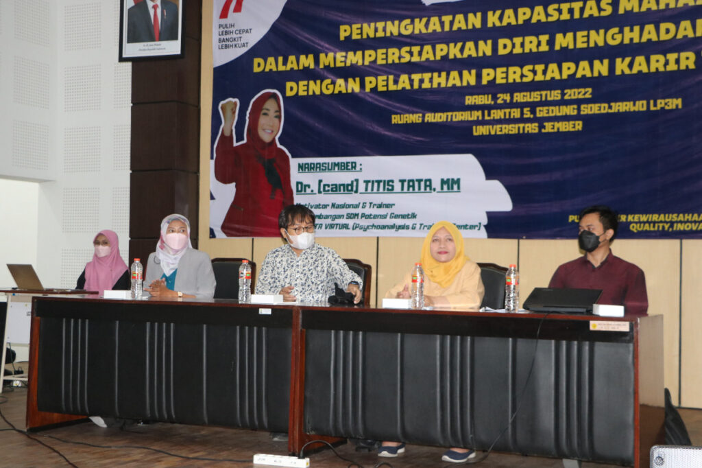 Guna mempersiapkan lulusan yang siap menghadapi dunia kerja, Pusat Karir, Kewirausahaan dan Alumni Lembaga Pengembangan Pembelajaran dan Penjaminan Mutu (LP3M) Universitas Jember menggelar kegiatan pelatihan persiapan karir (24/8).