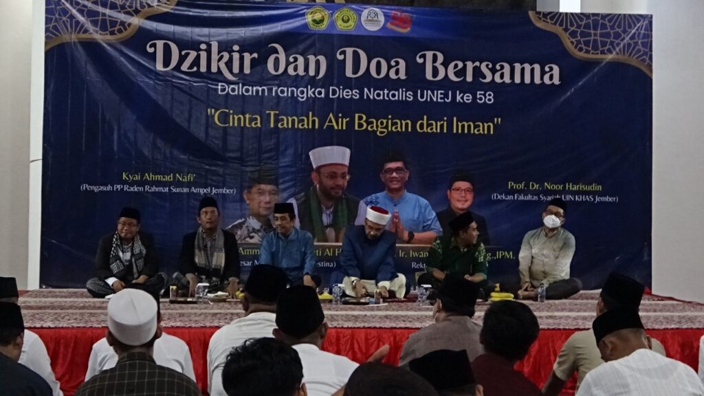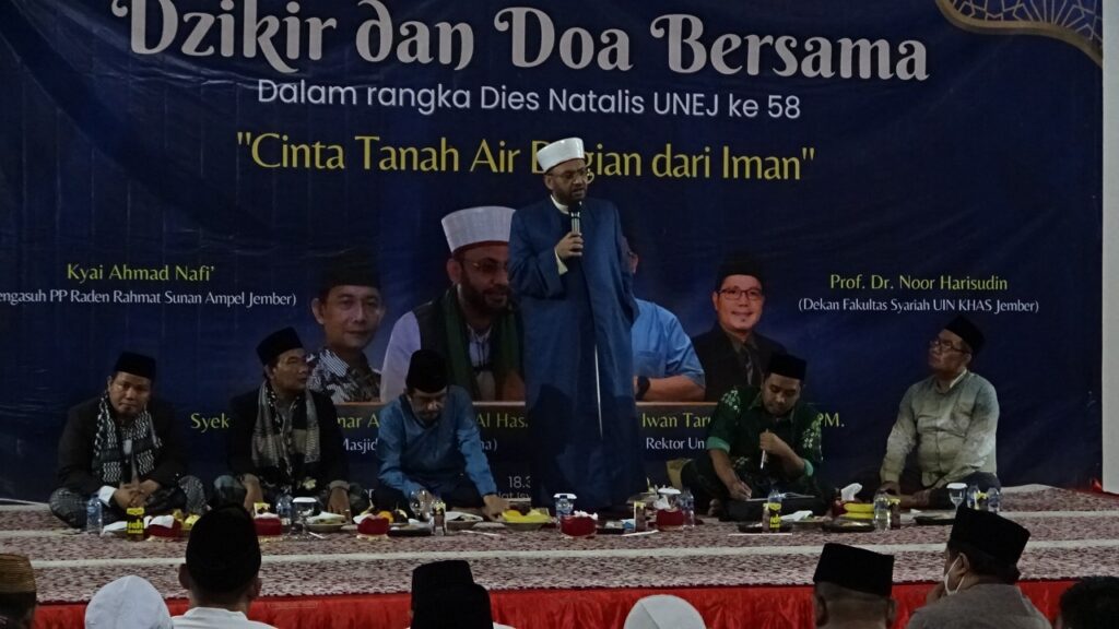 Dalam rangka Dies Natalis Universitas Jember ke-58, Universitas Jember menggelar Dzikir dan Do’a Bersama yang bertajuk “Cinta Tanah Air Bagian dari Iman” dengan menghadirkan Syekh sayyid Ammar Azmi Arafati Al Hasani, Imam Besar Masjid Al-Aqsa Palestina, Kyai Ahmad Nafi, Pengasuh Pondok Pesantren Raden Rahmad Sunan Ampel Jember dan Prof.