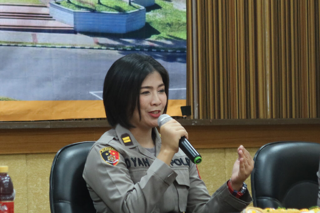 Kedua, alumnus Fakultas Pertanian Universitas Jember ini mengingatkan seluruh peserta agar memanfaatkan kecanggihan teknologi informasi dan komunikasi termasuk keberadaan media sosial dengan bijaksana. Pasalnya banyak pelaku tindak kekerasan seksual melakukan aksinya tanpa sentuhan fisik namun justru beraksi dengan cara digital melalui media sosial. Seperti melakukan pelecehan seksual dengan mengirim gambar porno, merekam dan menyebarluaskan gambar dan atau video tanpa ijin dan sebagainya. Bahkan secara berseloroh Iptu. Dyah Vitasari mengingatkan para yuniornya agar jangan menjadi ‘bucin’ alias budak cinta kala berpacaran agar tidak menjadi korban kekerasan seksual.
