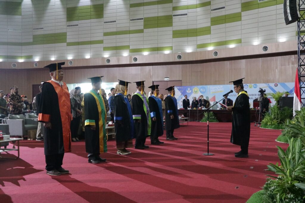 Selanjutnya Prof. Dr. Sukatman, M.Pd., Guru Besar bidang Tradisi Lisan dan Pembelajarannya Program Studi Pendidikan Bahasa dan Sastra Indonesia FKIP. Prof. Dr. Ir. Jojok Widodo Soetjipto, S.T., M.T., Guru Besar bidang Manajemen Konstruksi Program Studi Teknik Sipil Fakultas Teknik. Dan Prof. Dr. Sutisna, S.Pd., M.Si., Guru Besar bidang Fisika Material Fotokatalis Program Studi Fisika FMIPA.