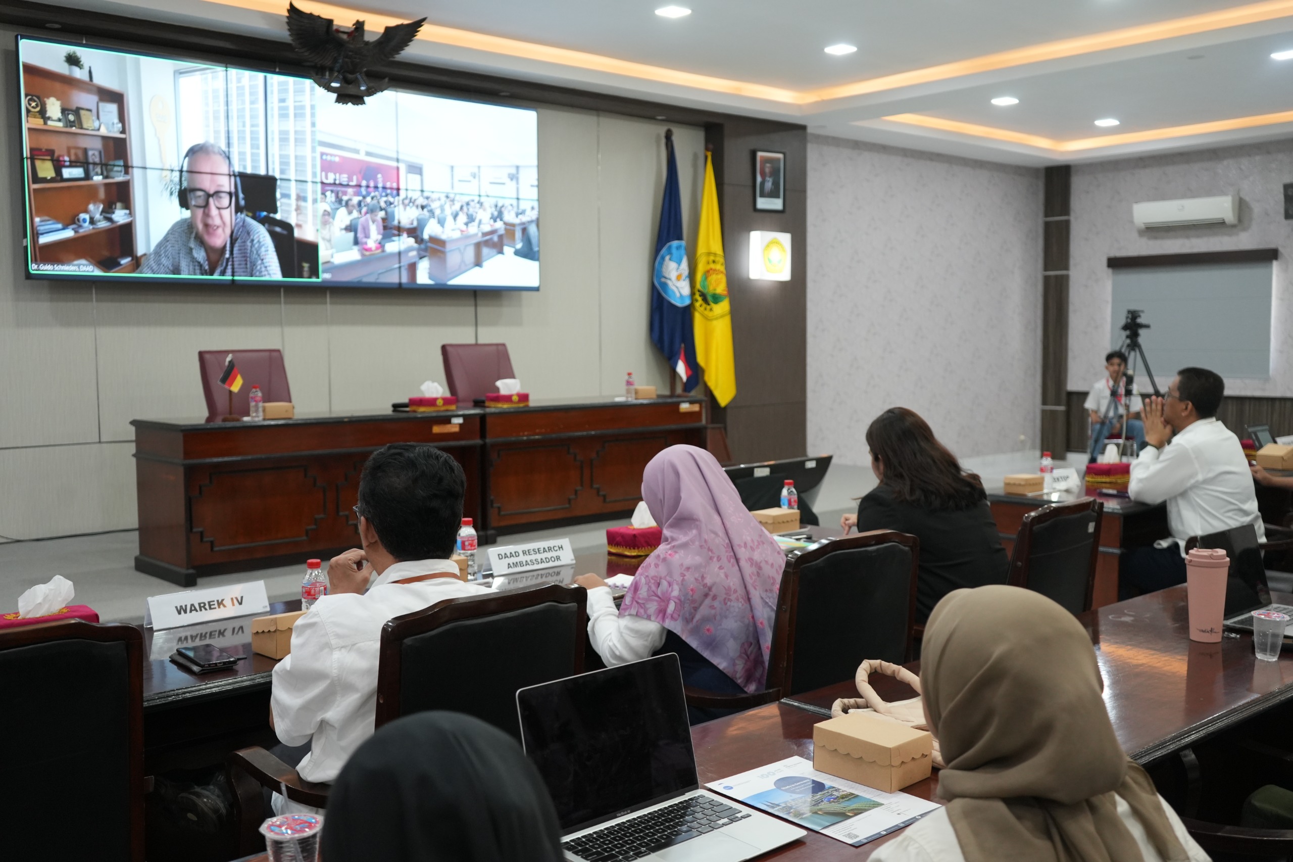 Guido Schnieders hadir secara daring dalam kegiatan sosialisasi program DAAD bertajuk “Your Gateway to Academic and Career Opportunities in Germany” yang digelar khusus untuk mahasiswa dan dosen UNEJ di aula lantai 3 gedung rektorat (22/9/2025). Menurut Guido Schnieders, UNEJ adalah salah satu Perguruan Tinggi di Indonesia yang rutin mengirimkan mahasiswa dan dosen melanjutkan studi maupun melakukan penelitian. Bahkan UNEJ memiliki DAAD Research Ambassador yakni Prof. Kartika Senjarini dari FMIPA UNEJ.