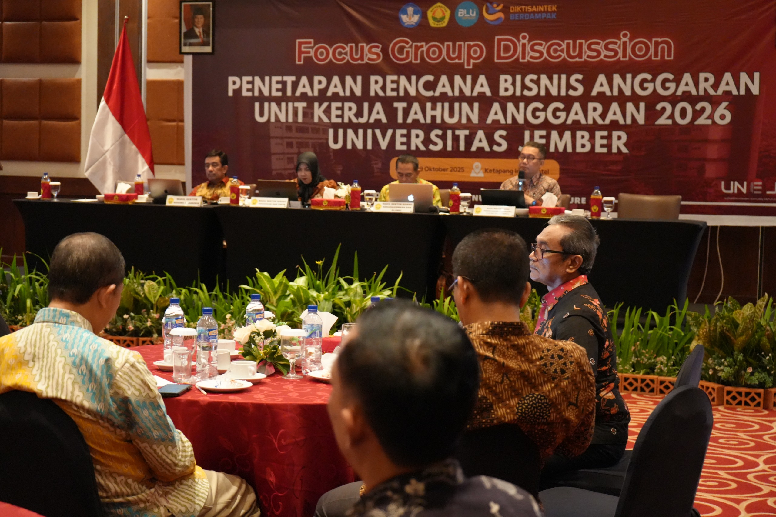 Pasalnya RBA yang baik akan menjadi tulang punggung pencapaian target yang sudah dibebankan kepada unit kerja. Sementara hasil monitoring dan evaluasi dari RTM menjadi bahan meningkatkan layanan guna perbaikan secara berkelanjutan.Arahan ini disampaikan Rektor UNEJ saat membuka kegiatan diskusi terpumpun penetapan Rencana Bisnis Anggaran Unit Kerja Tahun Anggaran Tahun 2026 (7-9/10/2025). Dalam sambutan pembukaan sekaligus arahannya, Iwan Taruna menjelaskan tantangan ke depan makin berat sementara kebijakan efisiensi anggaran yang diberlakukan oleh pemerintah masih berlanjut. Oleh karena itu semua unit kerja harus melakukan perencanaan dengan baik agar memberikan manfaat yang optimal.