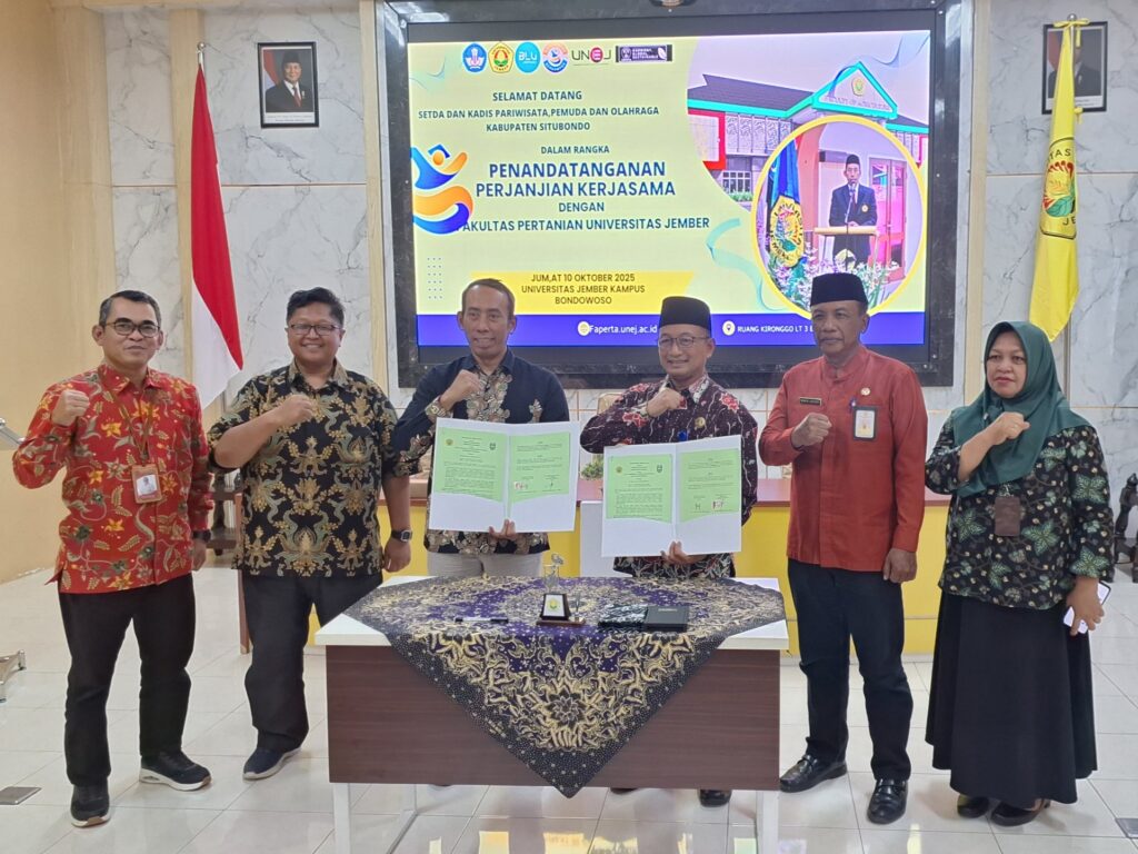 Kerjasama ini akhirnya dapat diwujudkan secara legal melalui penandatanganan kerjasama anatara Faperta UNEJ dan Disparpora Situbondo di kampus UNEJ Bondowoso (10/10). Ekoektasinya kerjasama ini mampu menjadi tonggak kontribusi dalam pembangunan Agroekowisata di Situbondo.