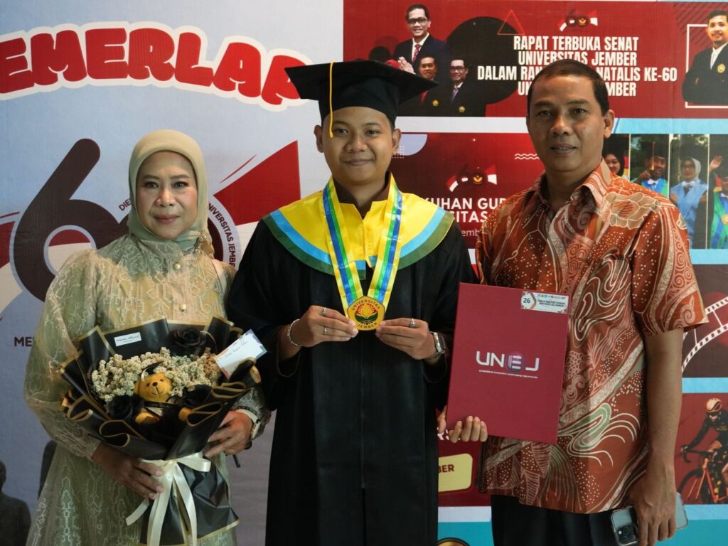 Selain Farrel, Universitas Jember juga memberikan penghargaan kepada lulusan terbaik dari setiap jenjang. Mereka adalah bukti nyata dari dedikasi dan keunggulan akademik. Dari jenjang Doktor (S3), predikat lulusan terbaik diraih oleh Dr. Wahyu Lestari, S.Pd., M.Pd. dari Program Studi S3 Pendidikan Matematika dengan IPK membanggakan 3,93 dan masa studi 2 tahun 9 bulan 27 hari.