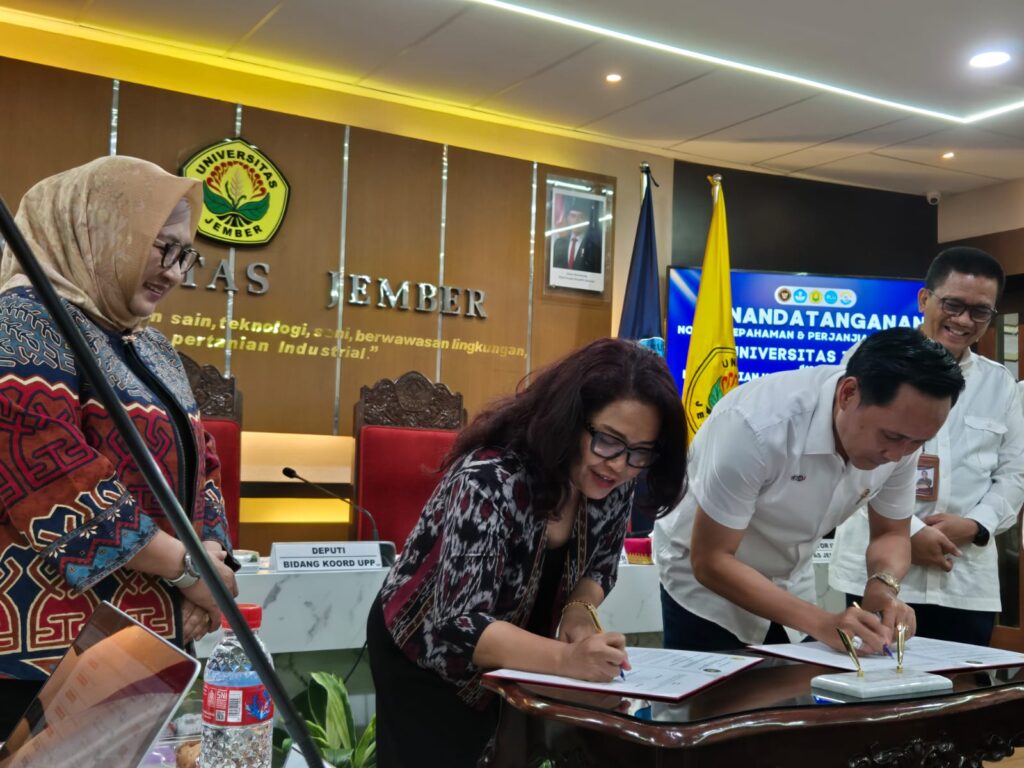 Dukungan ini disampaikan langsung oleh Deputi Peningkatan Daya Saing Produk Pertanian, Widiastuti, saat menandatangani naskah kesepahaman (MoU) dengan Rektor UNEJ di kampus (22/12/2025). Jalinan kesepahaman dilanjutkan dengan kerja sama antara UNEJ dengan Kemenko Pangan melalui Lembaga Penelitian dan Pengabdian Masyarakat (LP2M), Lembaga Penjaminan Mutu dan Pengembangan Pendidikan (LPMPP), Fakultas Pertanian dan Fakultas Teknologi Pertanian.Menurut Widiastuti, Kemenko Pangan bertugas mewujudkan Asta Cita Presiden RI khususnya kemandirian pangan, ketahanan pangan dan kedaulatan pangan. Target ini tentu membutuhkan dukungan semua pihak, termasuk perguruan tinggi sebagai penghasil Sumber Daya Manusia (SDM) sebagai penggerak bidang pangan, termasuk SDM pertanian. Oleh karena itu, setiap usaha menyiapkan SDM pertanian akan didukung mengingat sebagai sektor penting di bidang pangan.