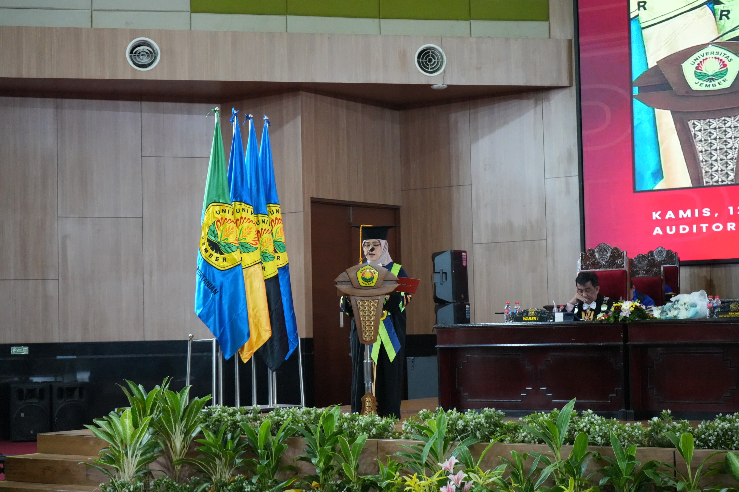 Universitas Jember (UNEJ) mengukuhkan empat guru besarnya di gedung Auditorium Kampus Tegalboto (12/2/2026).