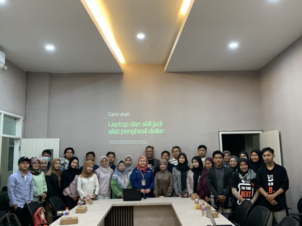 Dalam sesi materi, ia menekankan perubahan mindset sebagai langkah awal. Mahasiswa didorong untuk tidak hanya berorientasi menjadi pencari kerja, tetapi membangun skill yang dapat dijual. Ia menegaskan bahwa klien tidak membeli gelar akademik, melainkan solusi atas permasalahan mereka. “Portofolio lebih bernilai daripada sertifikat. Klien ingin tahu, apakah kita bisa menyelesaikan masalah mereka atau tidak,” ujarnya.