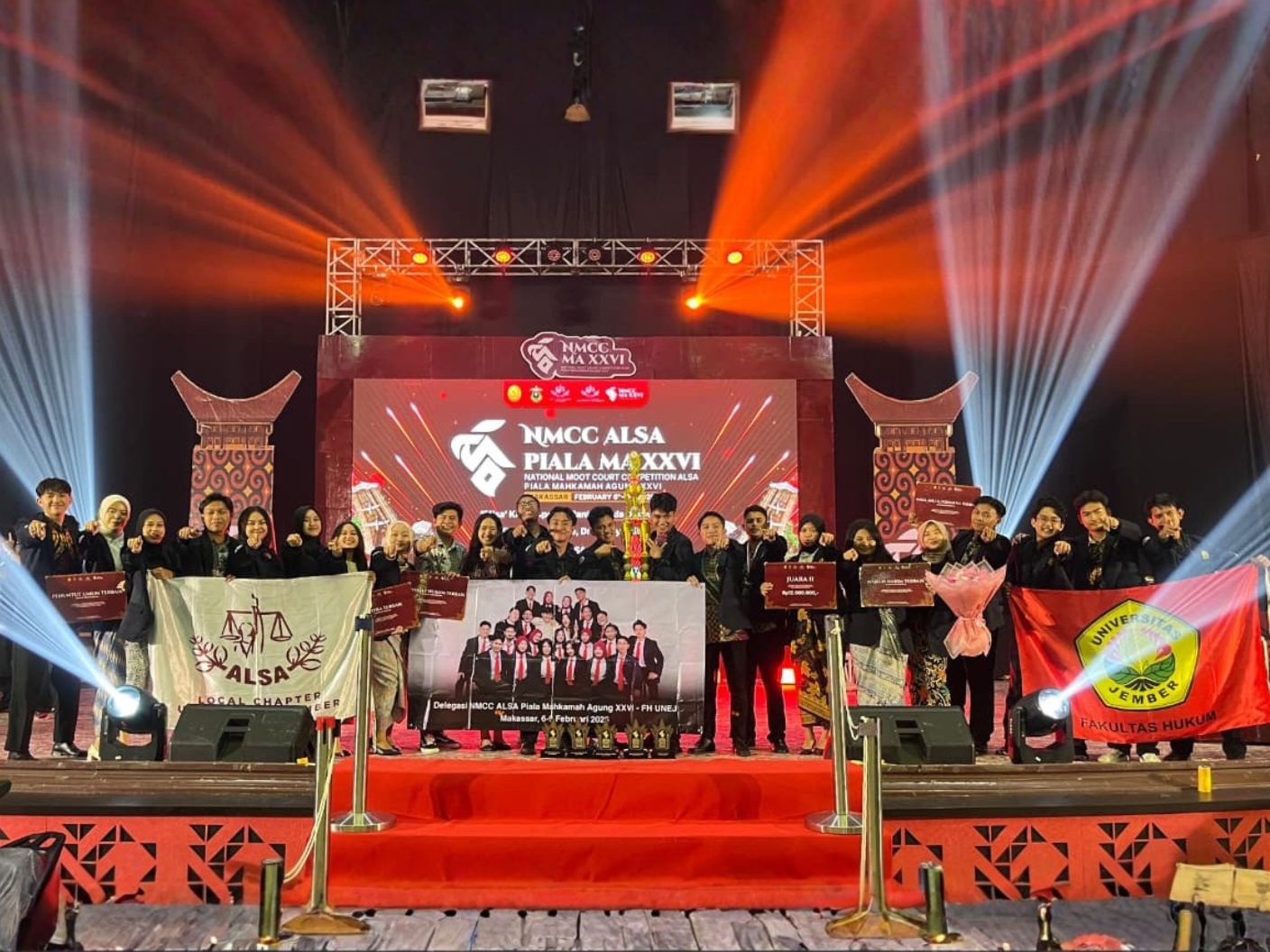 Jember, 18 Februari 2026 Fakultas Hukum (FH) Universitas Jember (UNEJ) kembali menorehkan prestasi membanggakan dalam ajang Asian Law Students Association (ALSA) National Moot Court Competition Piala Mahkamah Agung (NMCC MA) XXVI. Bertuan rumah di Universitas Hasanuddin, tim FH UNEJ berhasil menyabet kategori Majelis Hakim Terbaik, Penasihat Hukum Terbaik, Penuntut Umum Terbaik, Panitera Terbaik, serta Saksi/Ahli/Terdakwa...Read More