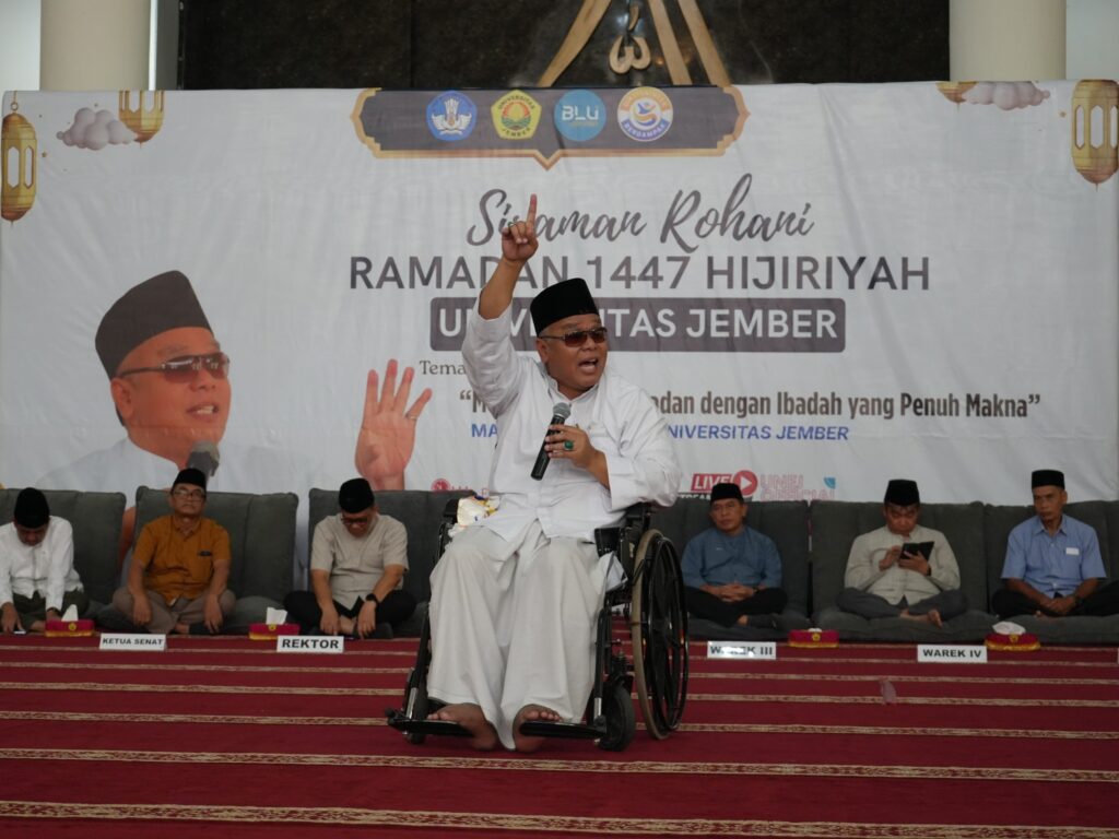 Sebelumnya dalam sambutannya, rektor mengajak keluarga besar UNEJ menjadikan Ramadan sebagai bulan tarbiyah atau masa pendidikan melalui beragam laku ibadah seperti puasa, sholat tarawih, tadarus hingga menunaikan zakat. Penempaan diri selama Ramadan diharapkan tidak hanya meningkatkan keimanan kepada Allah SWT, namun juga memiliki dampak nyata kepada hubungan sesama manusia.