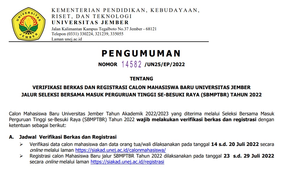 Verifikasi Berkas Dan Registrasi Calon Mahasiswa Baru Universitas Jember Jalur Seleksi Bersama Masuk Perguruan Tinggi Se-Besuki Raya (Sbmptbr) Tahun 2022 Akademik https://unej.ac.id/wp-content/uploads/2022/07/Selamat-peserta-SBMPTBR-2022_gabung.mp4 Download Panduan Verifikasi dan Registrasi SBMPTBR 2022 Partner Call Centre Akademik : 082180888055 (WA) | SSC : 085377337773 (WA) | akademik@unej.ac.idRead More
