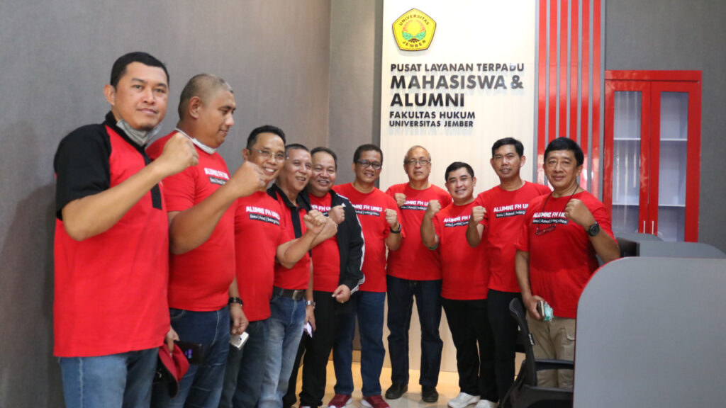 Ratusan alumni FH berkumpul kembali, bernostalgia bersilaturahmi dan mengenang memori di kampus yang kini mengusung motto Ilmu, Amal, Integritas. Mereka berkumpul dalam acara Temu Alumni Nasional 2022 dengan semangat “Satu Rasa, Satu Karsa”. Acara Temu Alumni Nasional diisi dengan beberapa kegiatan seperti senam bersama, jalan santai, peresmian Pusat Layanan Terpadu Alumni dan Mahasiswa FH Universitas Jember, Alumni FH Universitas Jember Berbagi, serta Musyawarah Nasional Alumni FH Universitas Jember.
