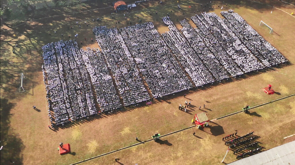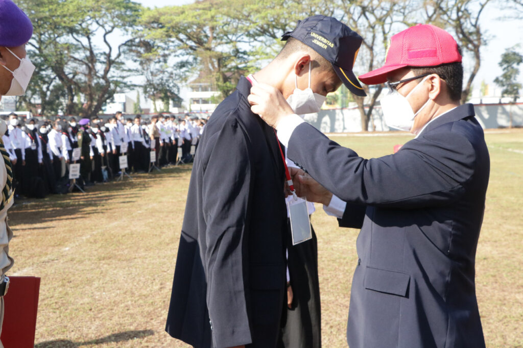 Rektor Universitas Jember, Iwan Taruna melantik 8.450 mahasiswa baru angkatan 2022 dalam sebuah upacara di stadion Universitas Jember (15/8).