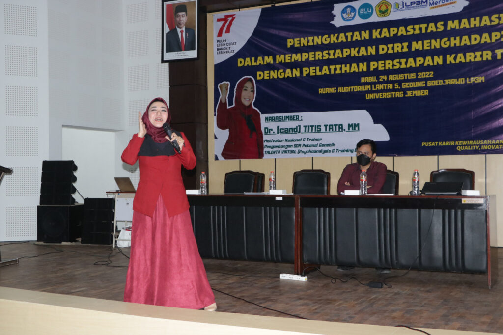 Sementara itu Kepala Pusat Karir, Kewirausahaan dan Alumni LP3M Universitas Jember, Rokhani menjelaskan, pihaknya terus berusaha memfasilitasi mahasiswa dengan berbagai pelatihan, konsultasi hingga menggelar job fair agar lulusan Universitas Jember mendapatkan pekerjaan layak sesuai dengan Indikator Kinerja Utama (IKU) yang ditetapkan oleh Ditjen Dikti Kemendikbudristek. “Ada tiga tujuan utama yang ingin kami capai dengan pelatihan persiapan karir hari ini yakni meningkatkan kemampuan mahasiswa dalam menyusun perencanaan karir, meningkatkan kemampuan mahasiswa dalam melakukan personal branding serta meningkatkan kemampuan mahasiswa dalam melakukan komunikasi yang efektif,” jelas Rokhani.