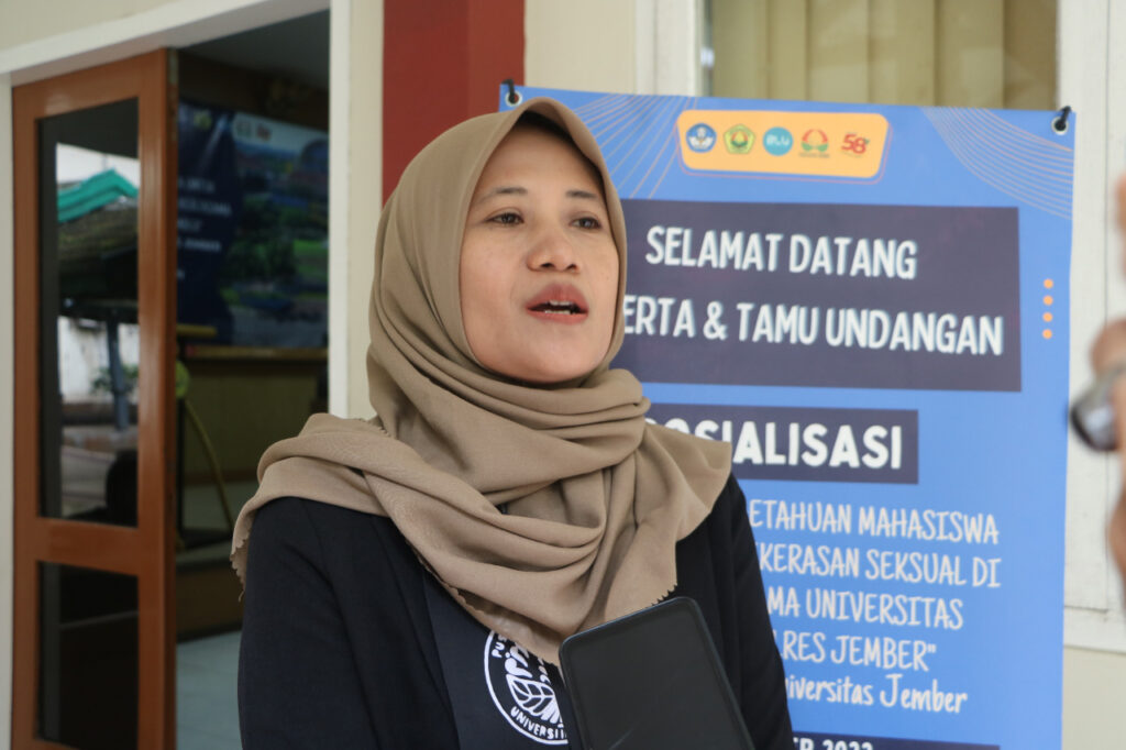 “Oleh karena itu saya mengajak semua mahasiswa Universitas Jember untuk berani melaporkan kepada Polres Jember jika menjadi korban atau mengetahui sebuah tindak kekerasan seksual. Atau melapor ke lembaga dan saluran resmi di kampus seperti PSG Universitas Jember. Kedua, ayo dukung korban kekerasan seksual sebab kekerasan seksual bisa terjadi jika orang-orang di sekelilingnya diam saja. Ketiga, siapkan sarana dan prasarana pendukung untuk meminimalkan potensi tindak pidana kekerasan seksual seperti pasang CCTV di area rawan dan sebagainya,” pesan Kanit PPA Polres Jember.