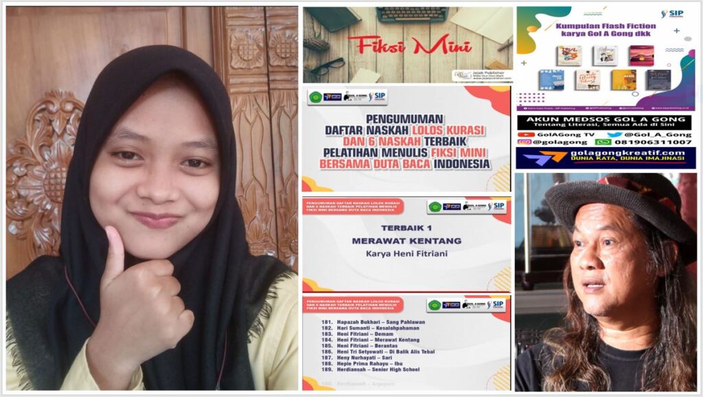 Karya berjudul “Merawat Kentang” yang ditulis oleh Heni Fitriani, mahasiswi Jurusan Sastra Indonesia FIB UNEJ semester III tersebut lolos kurasi oleh Gol A Gong (Duta Baca Indonesia) dan dinobatkan sebagai fiksi mini terbaik nasional. Pengumuman ditayangkan melalui kanal Youtube https://youtu.be/WPYRg828VEM (16/11/2022).Gol A Gong, selain dikenal sebagai Duta Baca Indonesia, juga penulis novel Balada Si Roy dan 125 karya fiksi lainnya. Dirinya menjadi narasumber dalam “Pelatihan Menulis Fiksi Mini Bersama Duta Baca Indonesia” secara daring melalui platform zoom meeting, yang diselenggarakan oleh Fakultas Keguruan dan Ilmu Pendidikan Universitas Nahdlatul Wathan (FKIP UNW) Mataram bekerja sama dengan SIP Publishing. Pelatihan tersebut ditindaklanjuti dengan kompetisi penulisan fiksi mini bagi peserta. Baca Selengkapnya...