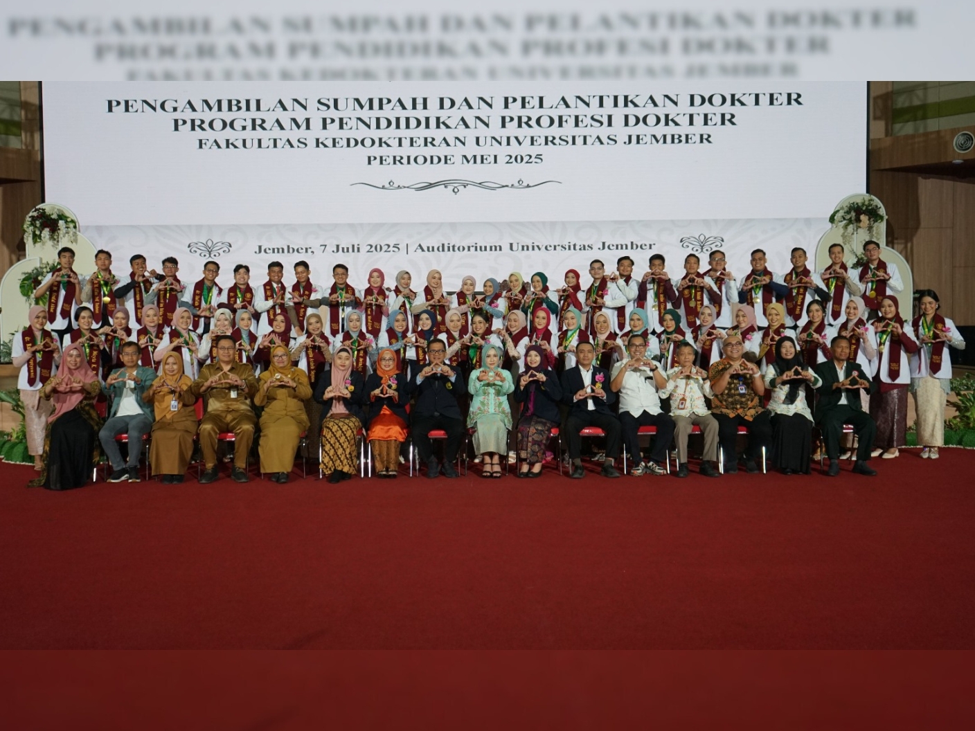 Fakultas Kedokteran Universitas Jember (UNEJ) sukses menyelenggarakan acara Pengambilan Sumpah dan Pelantikan Dokter Program Pendidikan Profesi Dokter Periode Mei 2025 dalam cara yang berlangsung khidmat di Auditorium Universitas Jember (07/07/2025).