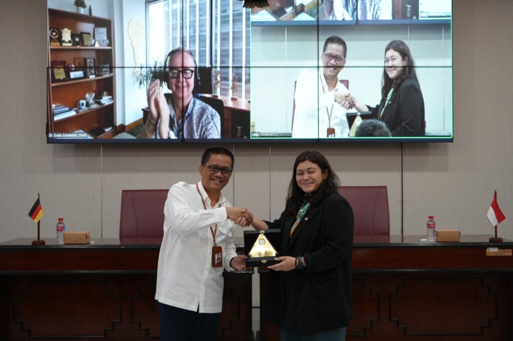 Guido Schnieders hadir secara daring dalam kegiatan sosialisasi program DAAD bertajuk “Your Gateway to Academic and Career Opportunities in Germany” yang digelar khusus untuk mahasiswa dan dosen UNEJ di aula lantai 3 gedung rektorat (22/9/2025). Menurut Guido Schnieders, UNEJ adalah salah satu Perguruan Tinggi di Indonesia yang rutin mengirimkan mahasiswa dan dosen melanjutkan studi maupun melakukan penelitian. Bahkan UNEJ memiliki DAAD Research Ambassador yakni Prof. Kartika Senjarini dari FMIPA UNEJ.