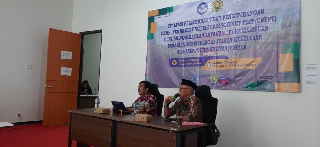 Unit Penunjang Akademik (UPA) Bahasa Universitas Jember (UNEJ) telah melayani 16.049 mahasiswa peserta Test Of English as a Foreign Language (TOEFL). Mahasiswa tersebut mengikuti tes dengan sistem Computer Based English Profisiency Test (CBEPT) pada periode Februari hingga September 2025. Data ini disampaikan oleh Kepala UPA bahasa, Prof. Hairus Salikin pada kesempatan kegiatan monitoring dan evaluasi pelaksanaan CBEPT TOEFL yang dilaksanakan di Kampus Jubung UNEJ (27-28/9/2025).