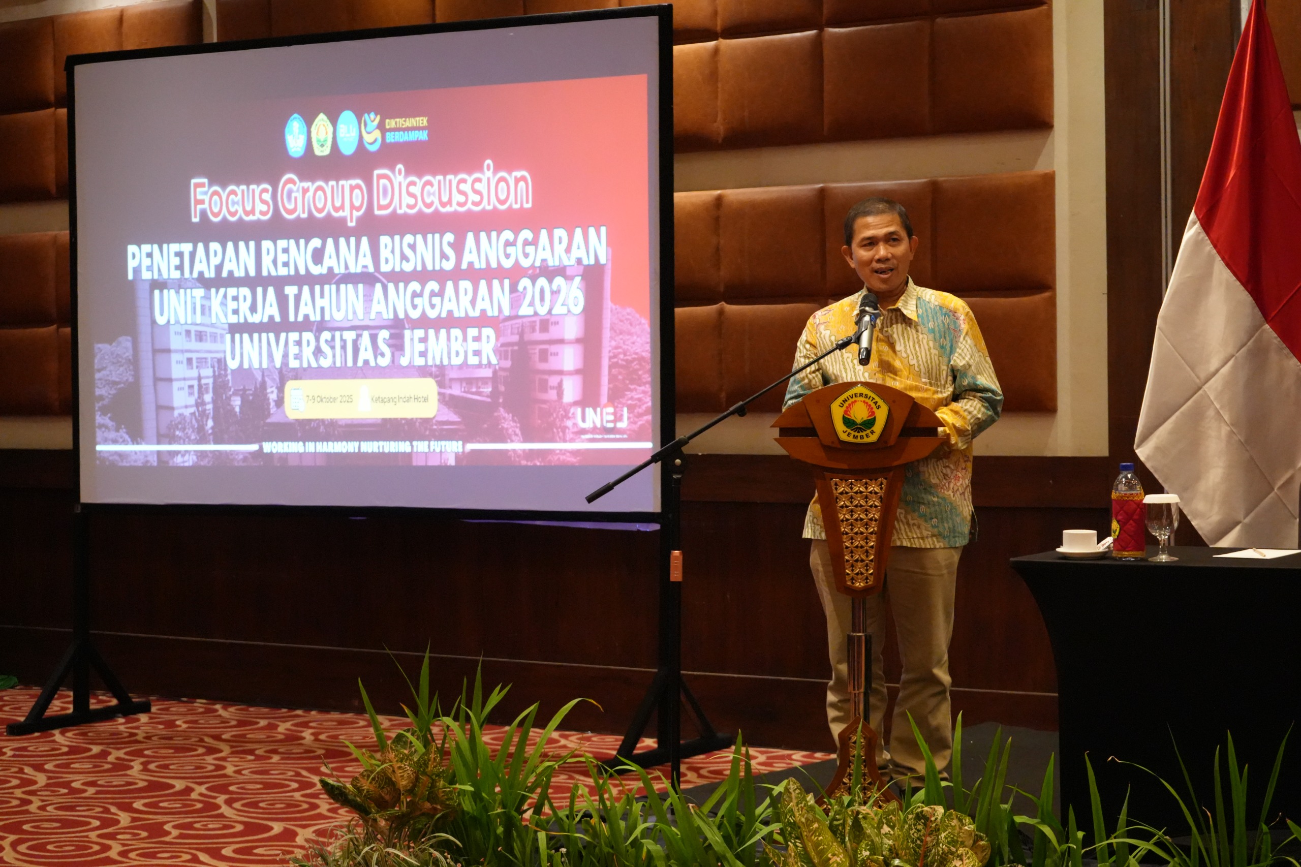 Pasalnya RBA yang baik akan menjadi tulang punggung pencapaian target yang sudah dibebankan kepada unit kerja. Sementara hasil monitoring dan evaluasi dari RTM menjadi bahan meningkatkan layanan guna perbaikan secara berkelanjutan.Arahan ini disampaikan Rektor UNEJ saat membuka kegiatan diskusi terpumpun penetapan Rencana Bisnis Anggaran Unit Kerja Tahun Anggaran Tahun 2026 (7-9/10/2025). Dalam sambutan pembukaan sekaligus arahannya, Iwan Taruna menjelaskan tantangan ke depan makin berat sementara kebijakan efisiensi anggaran yang diberlakukan oleh pemerintah masih berlanjut. Oleh karena itu semua unit kerja harus melakukan perencanaan dengan baik agar memberikan manfaat yang optimal.