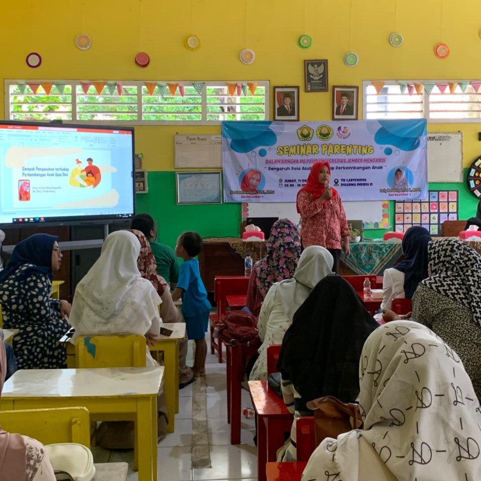 Kegiatan ini dilaksanakan di TK Labschool Dharma Indria II, yang merupakan bagian dari keluarga besar UNEJ, Jumat (31/10/2025).Acara yang diikuti oleh Guru TK Labschool Dharma Indria II, mahasiswa Asisten Mengajar (Asjar), serta Wali Murid Kelas A dan B ini berkolaborasi dalam program “PG PAUD Mengabdi” dengan seluruh lembaga layanan pendidikan anak usia dini di wilayah Jember dan sekitarnya, dengan fokus utama pada kegiatan peningkatan kompetensi guru dan parenting class bagi orang tua.