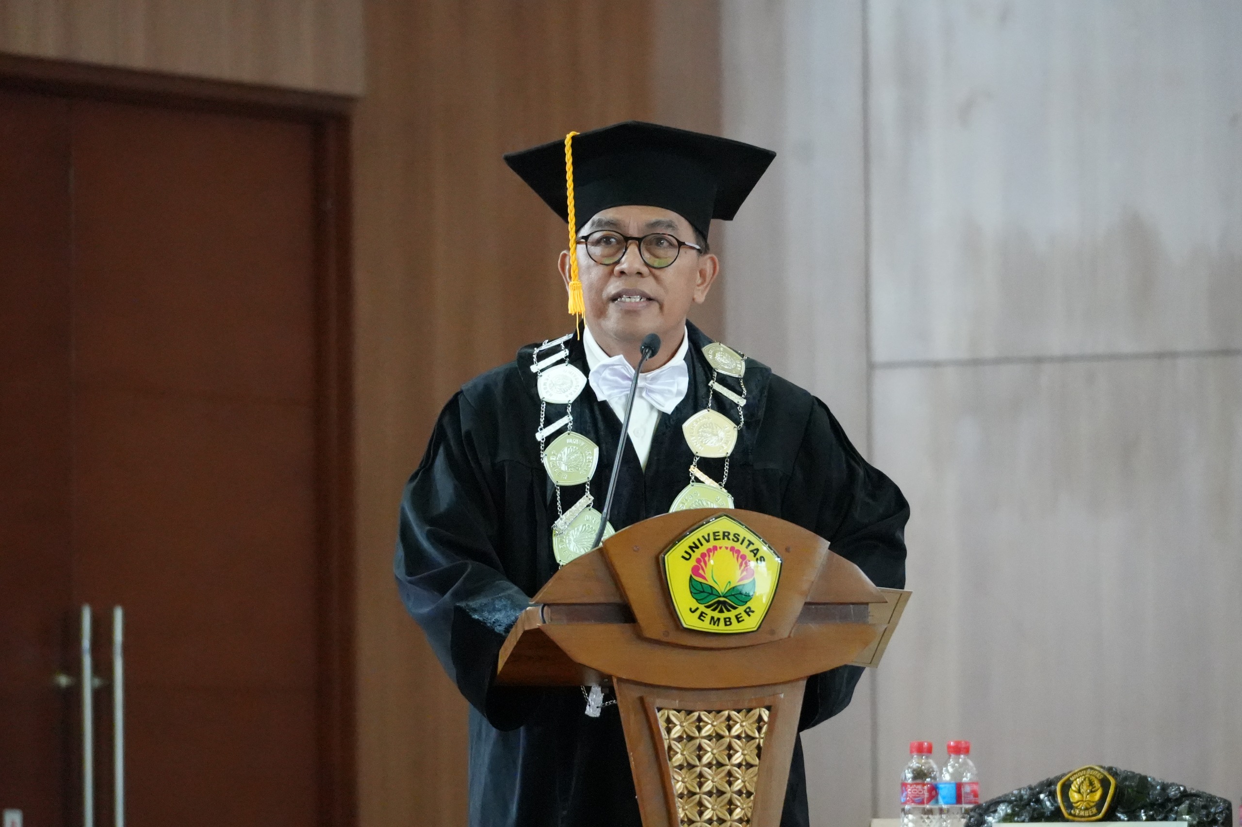 Ia lalu menambahkan, perguruan tinggi hari ini menghadapi tantangan percepatan digitalisasi, perkembangan teknologi kecerdasan buatan, serta dinamika hukum dalam sektor ekonomi dan tata kelola publik. FH UNEJ, menurutnya, harus terus memperkuat mutu tridharma, meningkatkan kualitas tata kelola berbasis digital, serta membuka ruang internasionalisasi menuju target besar 2035 sebagai World Class Law School.