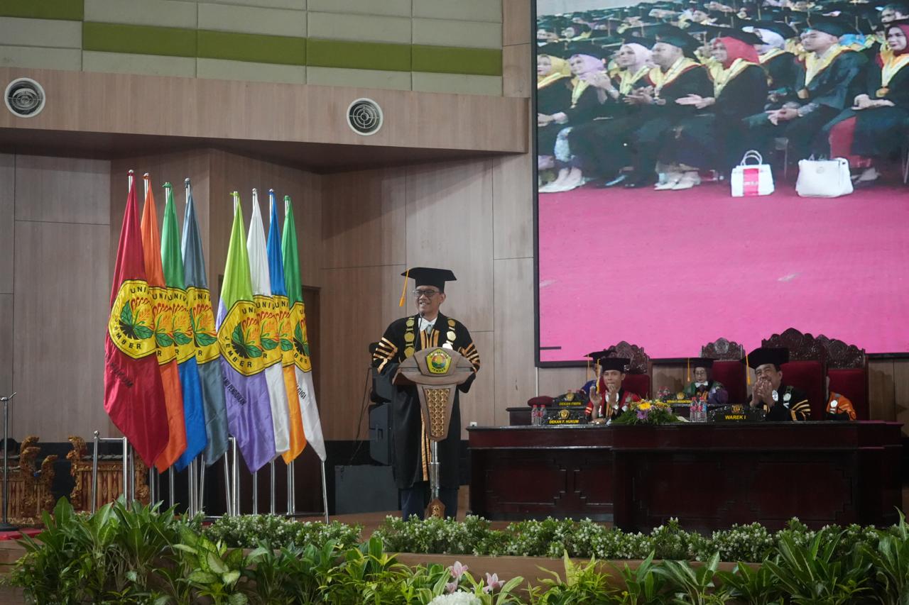 Acara yang berlangsung khidmat ini menjadi momentum penting bagi para lulusan untuk menutup satu fase perjuangan akademik dan membuka lembaran baru pengabdian di masyarakat.Dalam sambutannya, Rektor UNEJ, Dr. Ir. Iwan Taruna, M.Eng., IPM., ASEAN Eng., menyampaikan pesan refleksi bahwa wisuda bukanlah akhir dari perjalanan, melainkan awal dari tanggung jawab intelektual dan sosial sebagai insan terdidik yang diharapkan mampu memberi kontribusi nyata bagi bangsa.