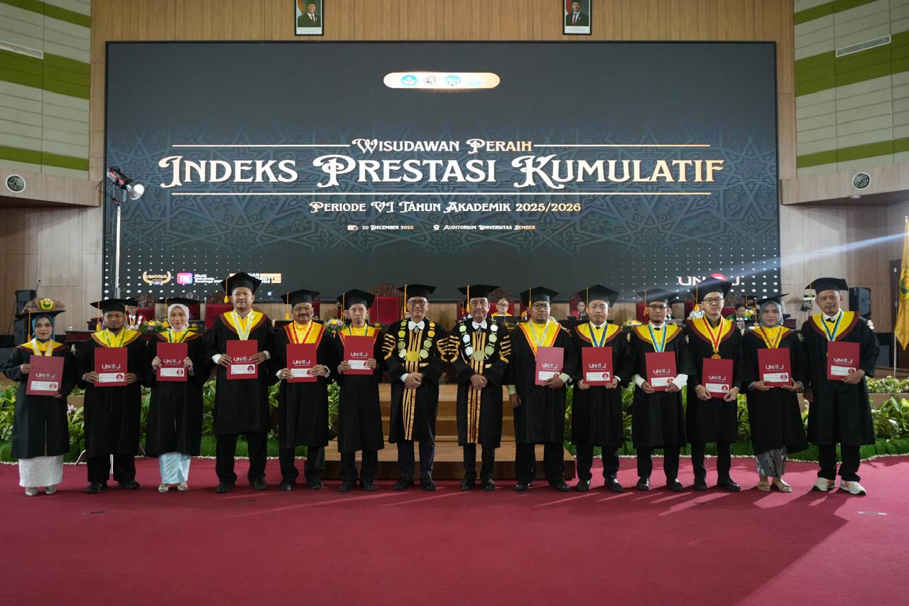 Universitas Jember (UNEJ) kembali mengukuhkan 800 wisudawan dalam prosesi Wisuda Periode VI Tahun 2025/2026 di Auditorium UNEJ.