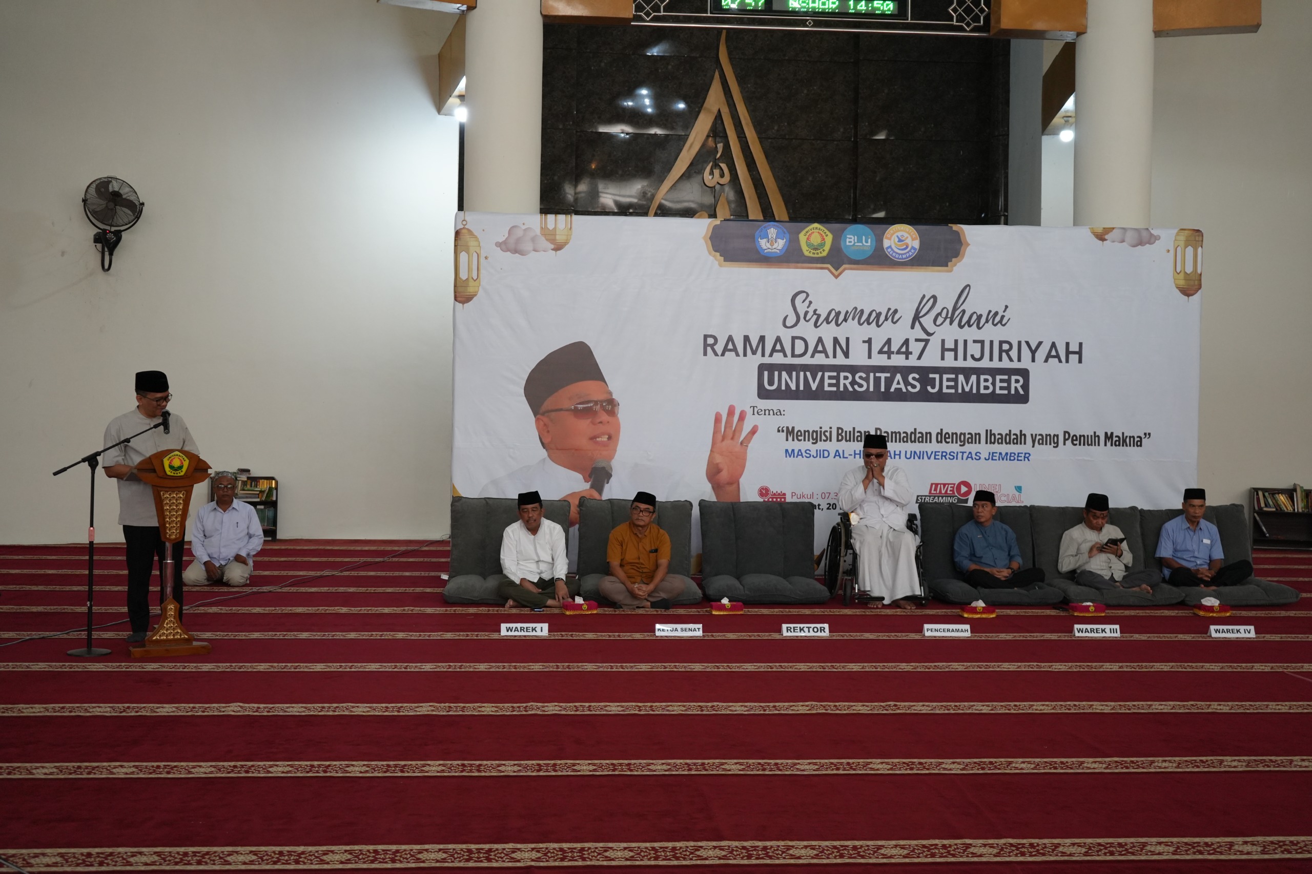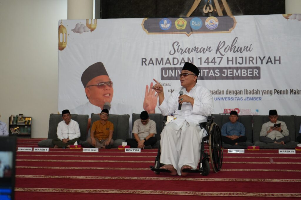 Sebelumnya dalam sambutannya, rektor mengajak keluarga besar UNEJ menjadikan Ramadan sebagai bulan tarbiyah atau masa pendidikan melalui beragam laku ibadah seperti puasa, sholat tarawih, tadarus hingga menunaikan zakat. Penempaan diri selama Ramadan diharapkan tidak hanya meningkatkan keimanan kepada Allah SWT, namun juga memiliki dampak nyata kepada hubungan sesama manusia.