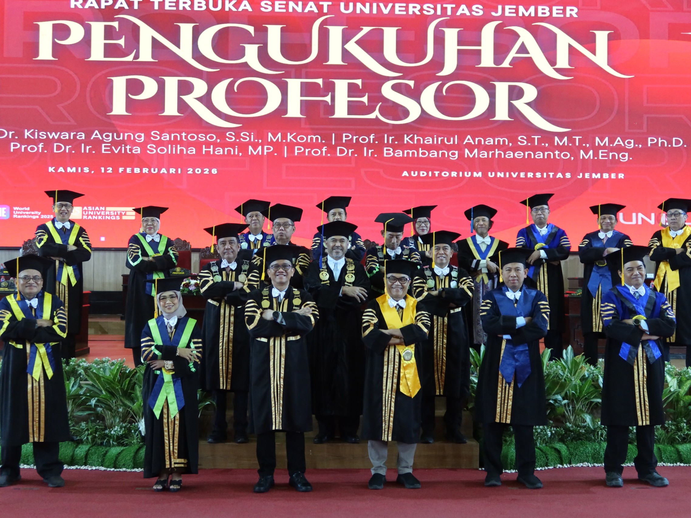 Jember, 12 Februari 2026 Universitas Jember (UNEJ) mengukuhkan empat guru besarnya di gedung Auditorium Kampus Tegalboto (12/2/2026). Menurut rektor, pengukuhan ini menjadi momen bersejarah dalam perjalanan UNEJ. Pasalnya setelah menjalani usia enam dekade lebih, pada pengukuhan guru besar inilah jumlah guru besar UNEJ tembus 100 orang, tepatnya berjumlah 101 orang profesor. Empat guru besar baru...Read More