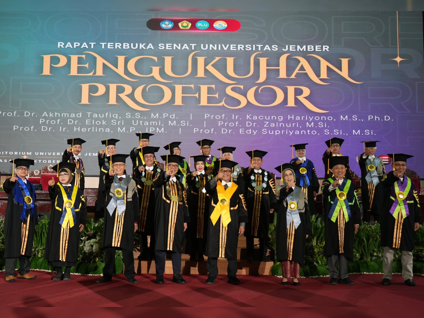 Jember, 21 Oktober 2025 Menjelang dies natalis-nya yang ke 61, Universitas Jember (UNEJ) mendapatkan tambahan enam guru besar baru. Mereka adalah Prof. Dr. Akhmad Taufik, S.S., M.Pd. Guru besar bidang Sastra dan Pembelajarannya, Program Studi Pendidikan Bahasa dan Sastra Indonesia FKIP. Prof. Ir. Kacung Hariyono, M.S., Ph.D. Guru besar bidang Pelestarian Genetik Tanaman, Program Studi...Read More
