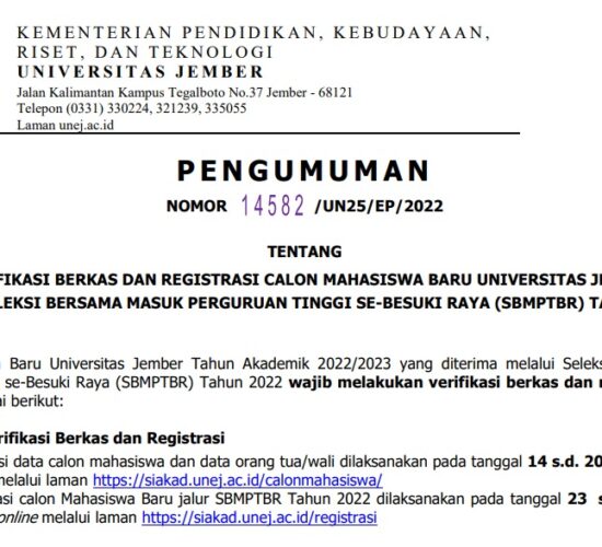 Jember, 02 Juli 2022Setelah hampir dua tahun melakukan aktivitas pendidikan secara online dan terbatas akibat pandemi Covid-19, kini aktivitas pendidikan di Universitas...